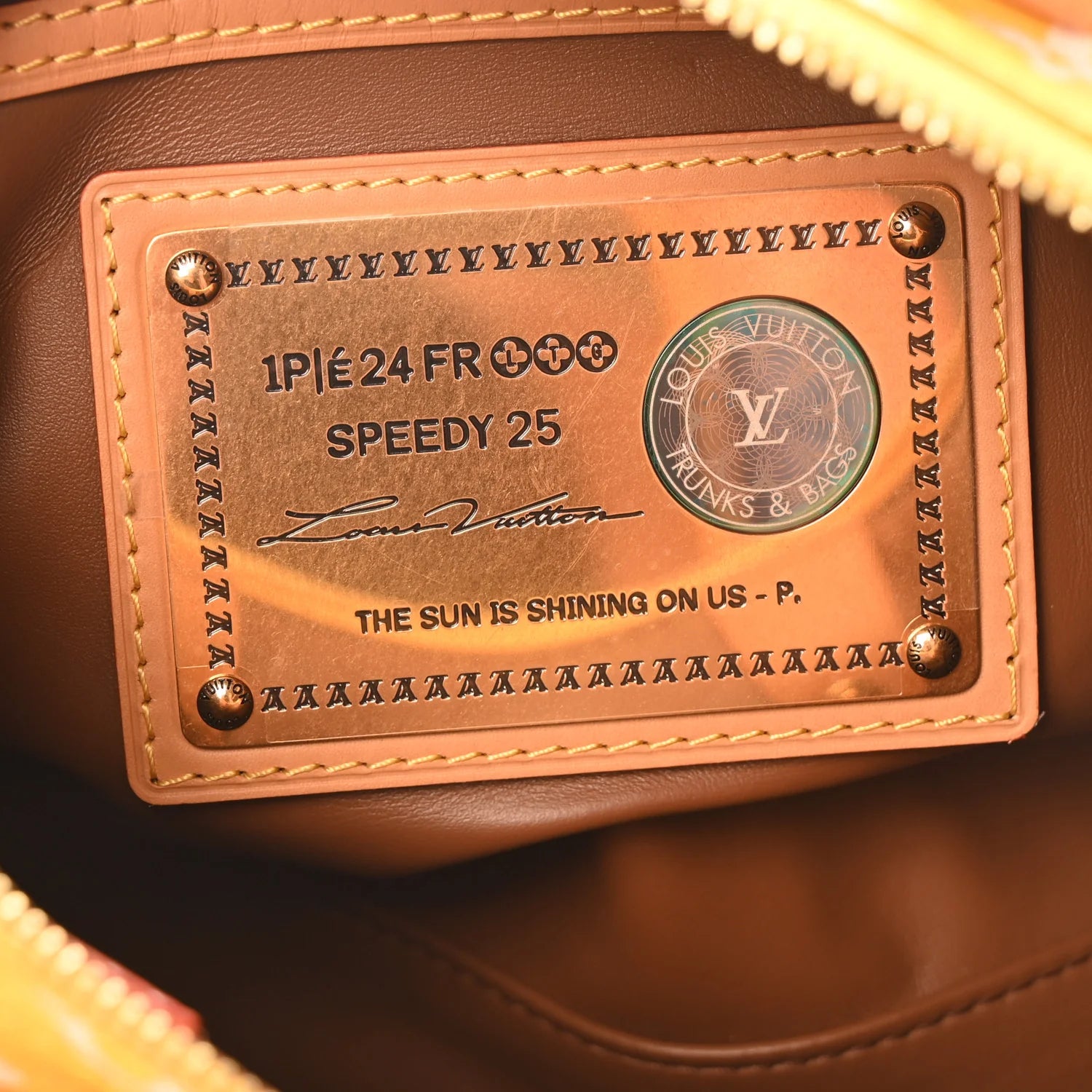 这款路易威登(LOUIS VUITTON)Speedy P9 Bandouliere 25手袋采用黄色小牛皮制成,饰以白色路易威登Monogram图案。手袋配有Vachetta卷边皮革提手、肩带以及黄铜配件和饰边。顶部拉链打开后,可见棕色皮革内衬和一个拉链口袋。